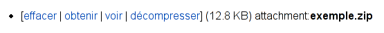 Après avoir envoyé un fichier Zip, vous verrez apparaître à côté de celui-ci un lien décompresser :
